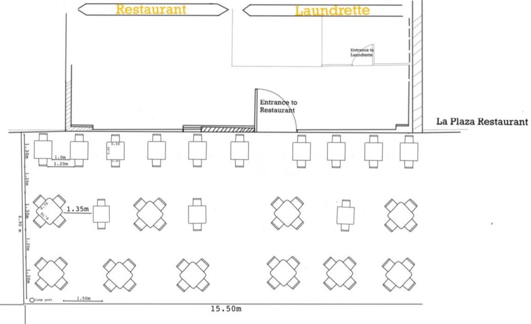 Application Details: | Placement of 13 tables and 52 chairs on Sunday to Friday and eight tables and 32 chairs on Saturdays on the Tavistock Road frontage between 8am and 10pm |
